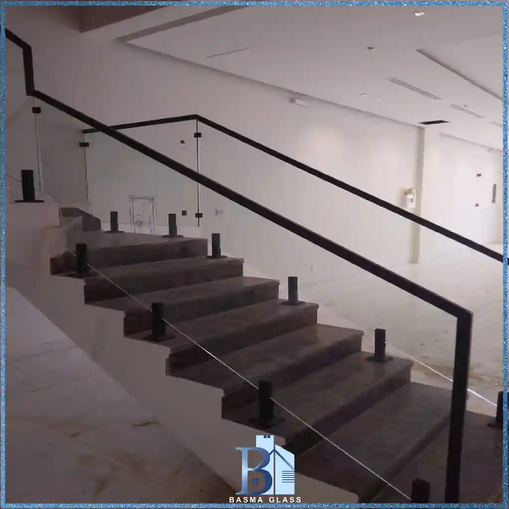 توريد وتركيب درابزين زجاج سيكوريت للسلالم والبلكونات بتصميمات حديثة تناسب الفلل والمباني السكنية والتجارية